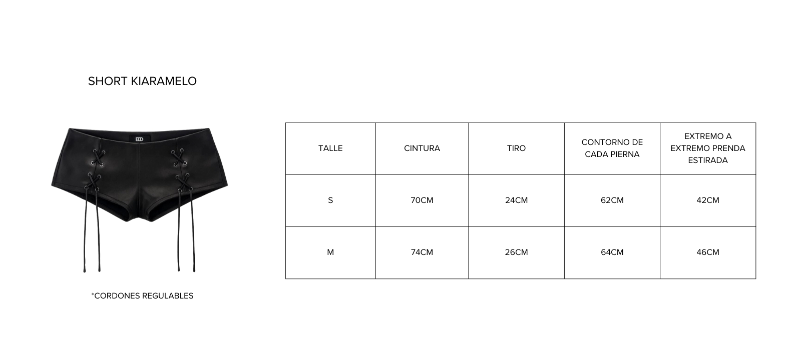 DESCRIPCION DE LA PRENDA: Short de cuero con ojalillos y cierre en su trasero. Talle S y M. De cuero premium
